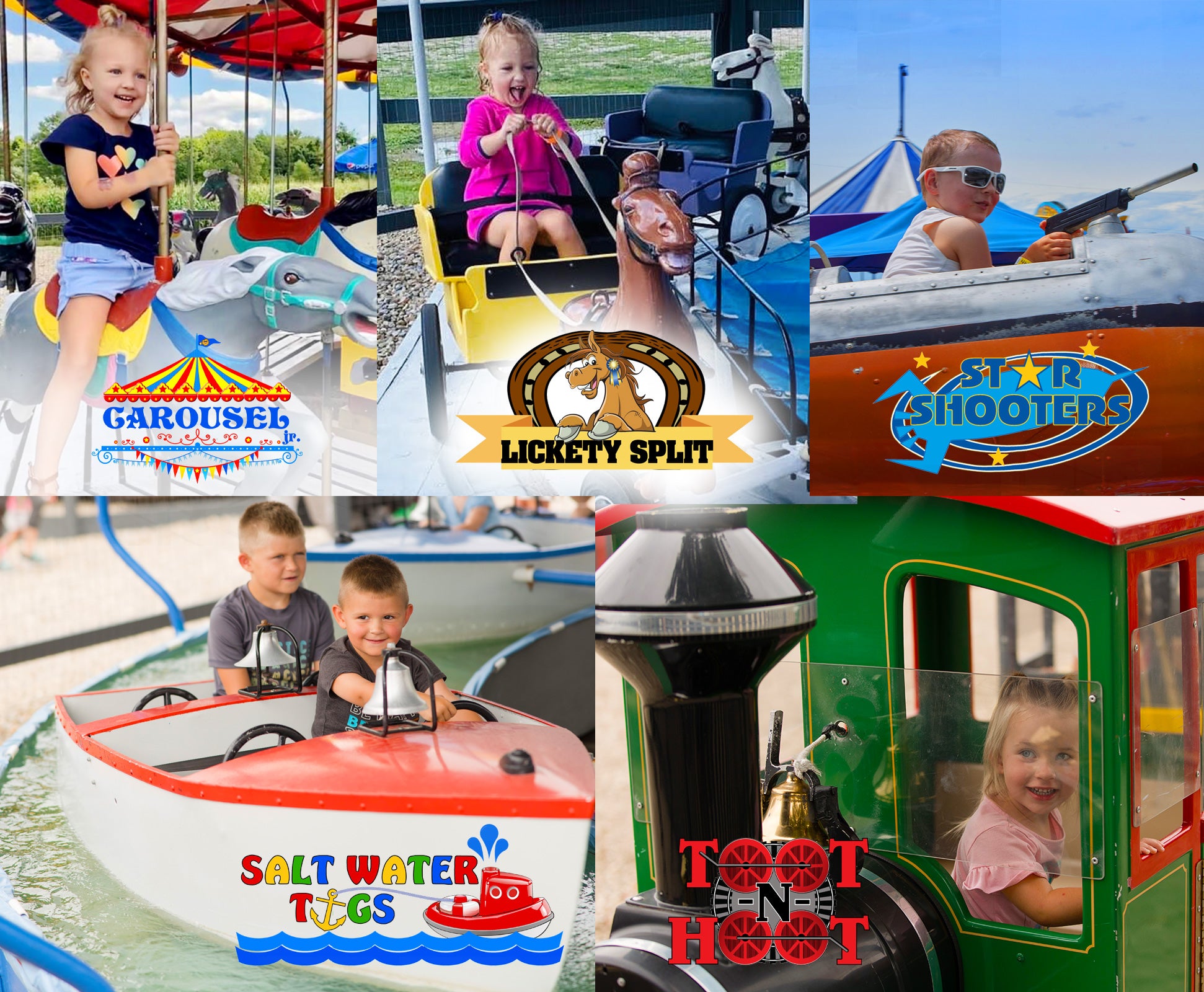 Carousel, Lickety Split, Star Shooters, Salt Water Tugs & Toot-N-Hoot
